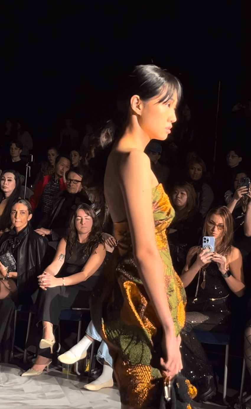 Now, my personal favourite collection of the day was AMBUS by designer Arlette Ngung. Her illustrious career as a textile artist, with experience working for brands like Saks Fifth Avenue and Holt Renfrew, is evident in the artistry of the patterns and delicate silhouettes of her designs. While I loved every dress, I have my eye on a structured strapless piece with a glittering sunflower print; and yes, I will be thinking about it for weeks to come.