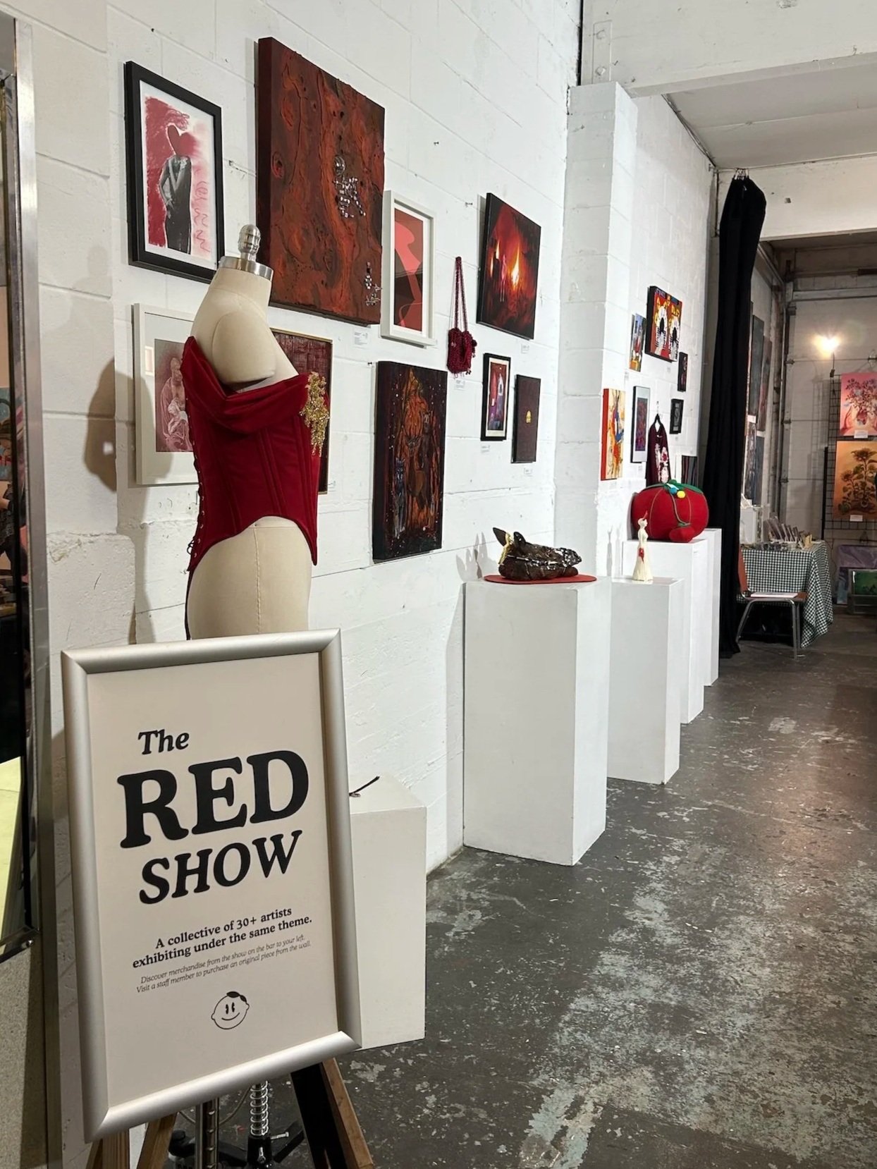 My first visit was for The Red Show, a group gallery show that ran alongside the Eastside Culture Crawl. The two were happening in the same space; the gallery show was on the walls of the back room and booths from Crawl artists set up throughout the building. The energy was buzzing and definitely ignited that spark I was looking for. Multiple artists were featured in the Crawl and the gallery show itself, but the one I was most excited to see was our very own SADCAST host, Kristi Wong.