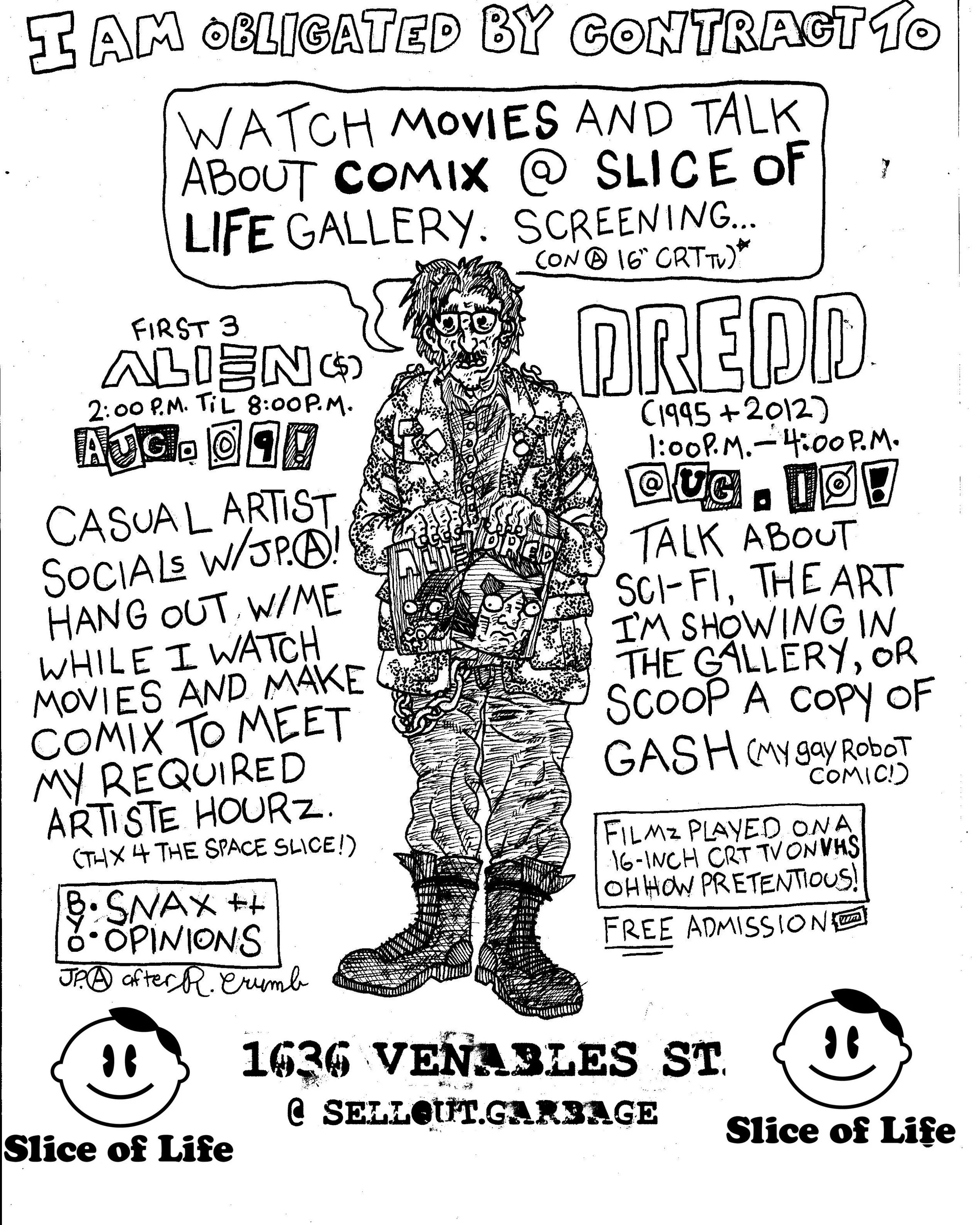 If you aren’t the patient type, be sure to check out the solo exhibit at Slice of Life Gallery and catch a special lo-fi screening on a CRT TV while Ayres hosts “studio hours” in the space from Aug. 9-12.