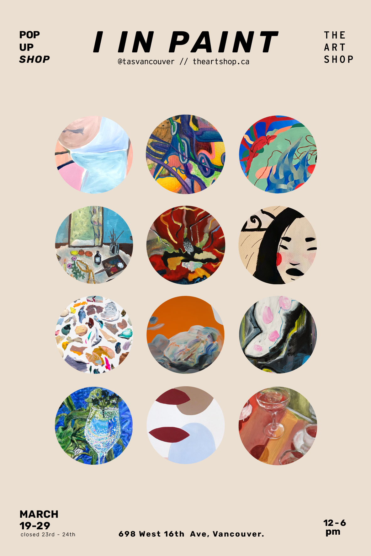 Recognizing the fluidity of gender, I IN PAINT is a small-scale participant in reclaiming the assumption of the male-only canon of art and business. Curated as a framework of accomplished and talented local painters and entrepreneurs, I IN PAINT highlights a need for the presentation of artists and brands from any and all communities.